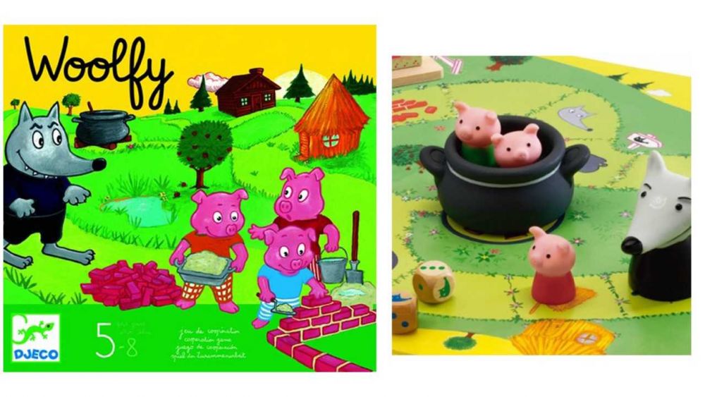 Jocul conține: o planță de joc, 3 figurine purceluși, un lup, un ceaun și 3 zaruri colorate.