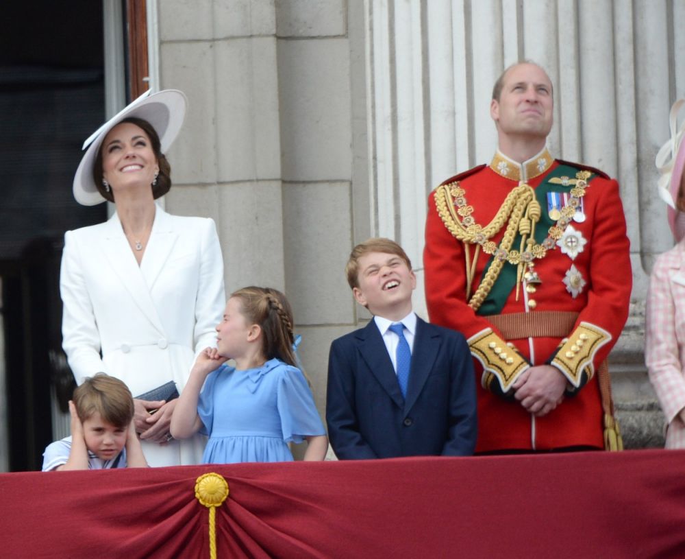 Prințul Charles și consoarta sa, Camilla, prințul William, Kate Middleton și cei trei copii ai lor, George (8 ani), Charlotte (7) și Louis (4) s-au aflat printre cei prezenți la balcon. Iar prințul Louis a profitat din plin de faptul că îl vedea toată lumea. A făcut cu mâna tuturor, a încercat tot ce i-a stat în putere pentru a atrage atenția reginei, a făcut tot felul de grimase amuzante și chiar a fost surprins scobindu-se în nas.