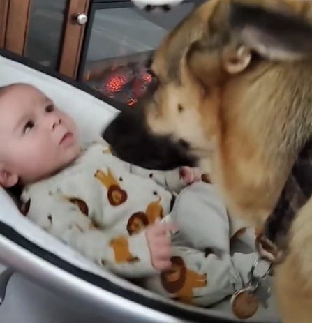 O mamă își lasă bebelușul singur în cameră cu câinele familiei, iar atunci când ea se întoarce și vede e se întâmplă, reacționează imediat și începe să filmeze cu telefonul mobil. În clip se poate vedea cum animalul ia o minge pe care o aruncă la picioarele copilului și așteaptă ca micuțul să îi arunce mingea înapoi.