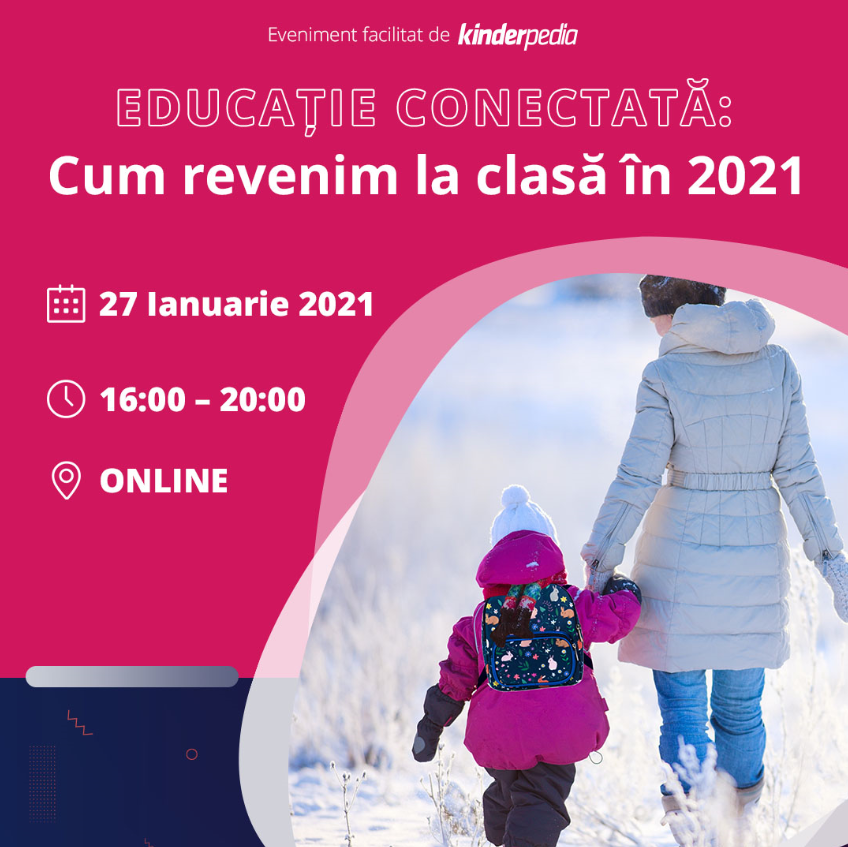 Kinderpedia organizează cea de a doua ediție a evenimentului Educație conectată, cu tema Cum revenim la clasă în 2021. Conferința aduce în prim plan implicațiile revenirii copiilor la școală sau la grădiniță. Vom discuta despre nevoile profesorilor și ale elevilor, într-o nouă paradigmă de învățare și despre beneficiile oferite de tehnologie, indiferent de scenariul în care va avea loc revenirea.