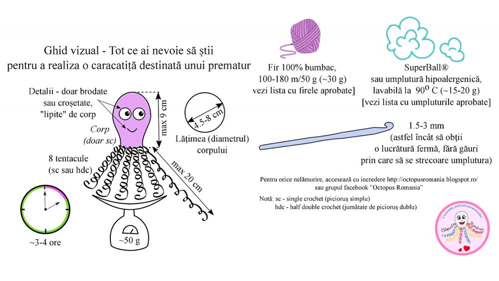 Aici găsești cum anume poți crea aceste mici caracatițe, în așa fel încât să poată fi acceptate în spital, în condiții de siguranță pentru bebelușii prematuri.