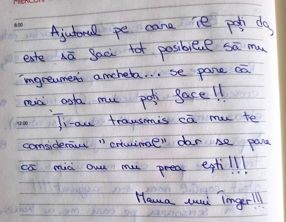 „Poate într-un ultim gest de omenie să arate că nu are de ascuns ceva și o să recunoască aproape evidentul și anume că stătea cu telefonul în mână la 100 de km/h într-o zonă unde viteza era limitată la 30 km/h”, spune Adrian Cuculis, avocatul familiei Raisei, care a prezentat și o scrisoare de la mama fetiței pentru polițist.
