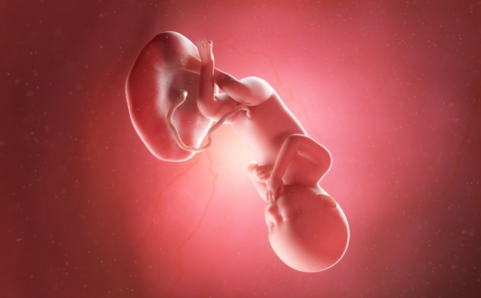 Bebelușul are aproximativ 49 cm și cântărește în jur de 2,9 kg. În mod normal continuă procesul de coborâre în zona pelvină, acesta pregătindu-se pentru momentul venirii pe lume. Intestinele copilului încep să secrete meconiu, o substanță de culoare verde-închis, formată din celule moarte și lichid amniotic, care va reprezenta și primul scaun pe care îl va elimina la scurt timp după naștere.