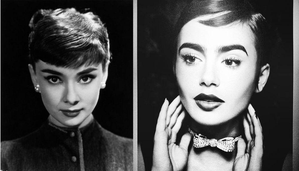Vedeți în imaginea de mai jos asemănarea dintre Lily Collins și Audrey Hepburn: